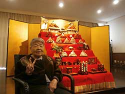 キッズルームの子供達が、毎日笑顔でお雛様を眺められており、元気よく、歌を歌われ、お雛様を眺めながらおやつを食べられる姿が印象的でした。特養の利用者様も子供達の元気な声を毎日聞きながら喜ばれておられました。