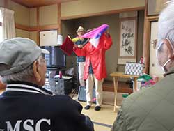輝楽苑の利用者様も毎月参加させていただいています。ぬくといカフェにも参加されている顔なじみの方にも会える地域交流の場となっています。体操や演奏会、松ぼっくりでの剣玉作りなど、毎月楽しい催しが行われるため、利用者様、スタッフ共にとても楽しみにしています。今回はマジックショーが行われました。利用者様も地域の方も、手を叩いて大盛り上がりでした。来月の参加も楽しみです。