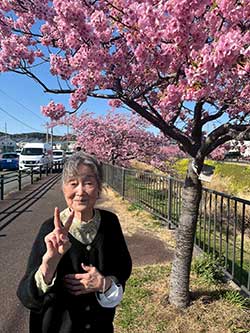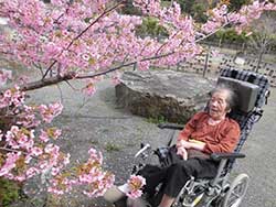 桜を見に行くまでに坂を上らないと行けないのですが坂を上りきり、上を向くと立派な桜が咲いており、とても笑顔で「あんな所に綺麗な桜が咲いてたんだ」と話されていました。今後も利用者様の笑顔が増えるように支援してまいります