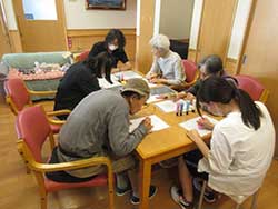 午後はレクリエーションとして皆様と作品作りを楽しみました。生徒さんからは「将来は医療・福祉の仕事に関わりたい」との言葉もあり、この日の経験が少しでも役に立てば嬉しいです。