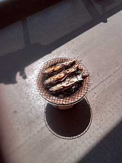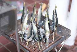 豊橋の山崎水産から鮎を仕入れ、炭火で鮎を塩焼きにしました。
