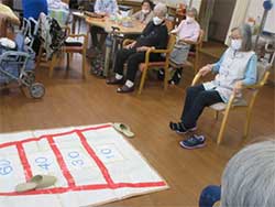 竹島園では少し早いですが、9月12日に敬老会を開催しました。スリッパ飛ばしゲームと利用者様一緒に作成した写真パネルで写真撮影をしました。スリッパ飛ばしゲームでは大きな笑い声が響き、皆様の元気な姿に私たちスタッフもたくさんの力を頂きました。