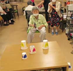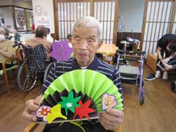 流れる素麺を目で楽しみながら、皆様夢中で箸を伸ばされ、お腹いっぱい召し上がられました。「とても美味しかったよ」「楽しいね」と賑やかなひとときとなりました。工作活動では「お月見飾り」に挑戦しました。牛乳パックの土台に緑や青など秋を感じる色の折り紙やパーツを貼付け、それぞれ個性あふれる素敵な作品が完成しました。季節を感じる活動を通じて、皆様に今後も楽しんで頂こうと思います