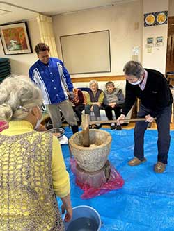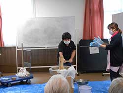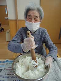 お彼岸のおはぎ作りでは、もち米ちうるち米をつぶし丸めて、のしに並べました。のしを見たご利用者様は「懐かしいねぇ」「こういうの使っただよ」と懐かしむ様子も見られました。これからもおやつ作りだけでなく色んな形で季節を味わっていただけたらいいなと思います