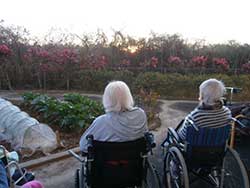 有料老人ホーム光楽苑では、利用者様同士で協力し合いながら中庭の畑のお手入れを楽しまれております。