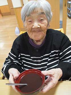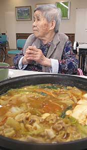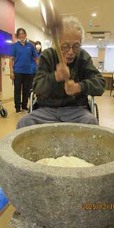 ちょうど風が強い日で寒かったのですが、しっかりお参りをして来ました。また、出かけられなかった利用者様は、残った職員とおやつレクのおしるこを作って頂きました。施設に戻った頃におしるこが出来上がり、「寒かったから余計に美味しい。」「外は寒かった?」等会話が弾みながら召し上がられました。二種類のレクを同じ日に行なう新しい試みでしたが、なかなか好評だったので、定期的に行っていきたいと思います。