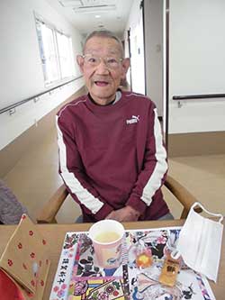 節分ロールケーキと豆菓子を準備し、皆様嬉しそうに召し上がっておられました。笑顔でたくさんのお話しをしておられ、賑やかな節分の日となりました。