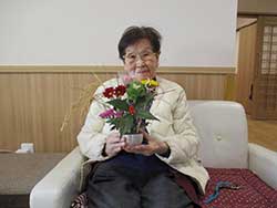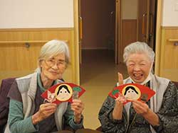段飾りのひな人形を飾るときから皆様でにぎやかに飾っていただきました。ひなまつり会ではお内裏様になっていただき記念写真を撮らせていただきました。お化粧も自らされて笑顔あふれるひなまつり会でした。翌日には「早くお内裏様に後ろ向いてもらわんと嫁にいけんに」と言われ急いで後ろを向いてもらっている職員の姿もありました