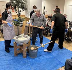 お米をすりつぶすのに苦戦している職員を見かねて利用者の皆様が手伝って下さりました。みんなで協力して作ったおかげで、見た目も味も素晴らしい出来栄えのおはぎが完成しとても有意義な時間になりました。今後も、利用者の皆様が参加しながら楽しめるレクリエ―ションを開催していきたいと思います。