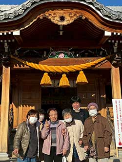 昨年と比べると日差しも温かく利用者様方も「自分ではお参りにいけないから連れて来てくれて嬉しいよ」「温かくて人も少なくてゆっくり歩けたよ」と喜ばれていました。お参りの後は甘酒を飲まれ「ここで飲むから美味しく感じるね」と楽しまれていました。苑に戻ると「今年も元気で過ごせますようにとお参りしてきたよ」と報告して下さいました。