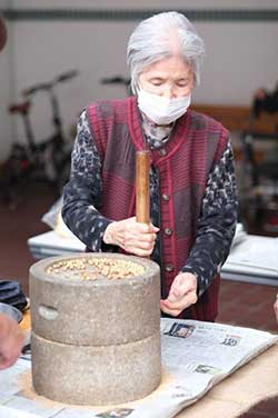 里芋を始め根菜やお肉と具沢山の汁が完成し、豆腐田楽も加わりました。とても好評で、おかわりもしていただけました。皆様で共同作業し交流を図ることで、親睦の場を設ける事ができました。皆様のとても素敵な笑顔が見られたのが印象的でした。