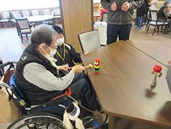 お話をしたり、懐かしい遊びをしたり皆様楽しみながら交流することができました。利用者様は、様々な遊びを通して童心に帰られたようで生き生きとした表情をされていました。地域の方々との交流は入居者様・スタッフの楽しみとなっています。今後も交流をはかることでより良い関係づくりを継続していきたいと思います。