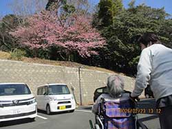 施設の裏に河津桜が咲いており天気の良い日に散歩をしながら利用者様と桜を見に行きました。
