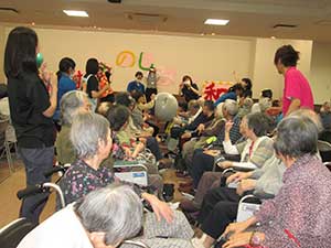 「ここは、薄いピンク色の紙がいいね」等、会話を楽しみながら行われていました。「うれしいひなまつり」を楽器演奏しながら唄い、雛祭りの由来や、思い入れの深いエピソードを話して下さった方もいました。甘酒を皆様で作り、心身共に温まって頂いた雛祭り会でした。