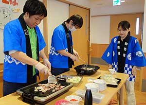 そんな春が旬の苺を使い、苺大福を作りました。食紅でピンク色に染めた生地の中にあんこと丸々一粒の苺を入れました。甘いあんこと甘酸っぱい苺が絶妙で「美味しい!もっと食べたい」「難しかったけど楽しかった」と皆様春の味覚を堪能されていました。