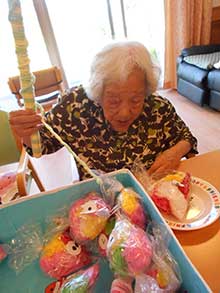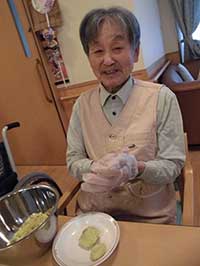 参加された入居者様と一緒にオヤツ作りや盛り付け等手伝ってもらい入居者様皆様とひな祭りの歌を聴きながら完成したオヤツを頂きました。最後に職員が用意したお菓子の詰め合わせをプレゼントし「ありがとう」「こんなにたくさんうれしいや」と笑顔がこぼれておりました