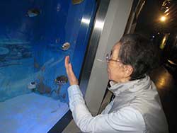 3月3日のひな祭りの日、利用者様と一緒に施設入り口スペースに飾ってある雛人形を見に行きました。