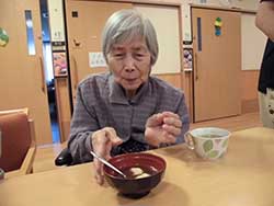 「こんなの食べた事ないなー。」と最初は不思議そうにしていた利用者様も、職員や他の利用者様が食べる様子を見て「こんな美味しいの?もっと食べたいなー。」と喜ばれていました。今年も健康に明るく笑顔の多い年にしていきたいと思います。